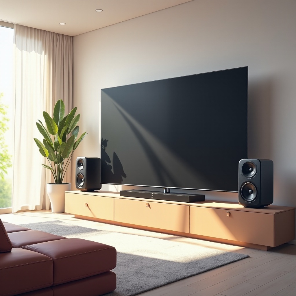 Tamaño de la Habitación y Diseño: Combine el tamaño del televisor y la potencia de salida de los altavoces con las dimensiones de su habitación para asegurar que el sonido no sea abrumador ni insuficiente.